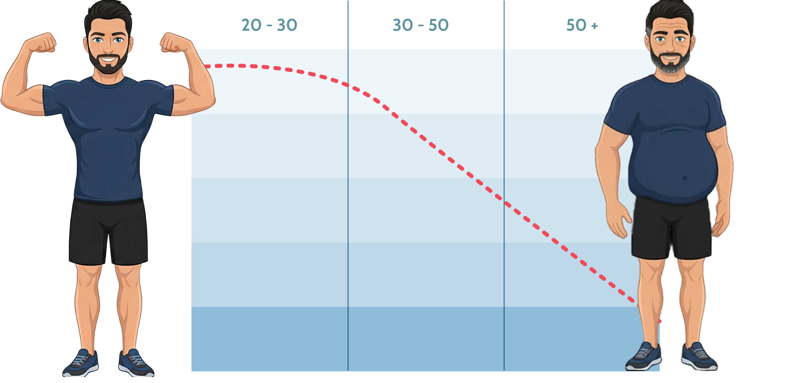 → Men naturally lose 1% more every year after age 30